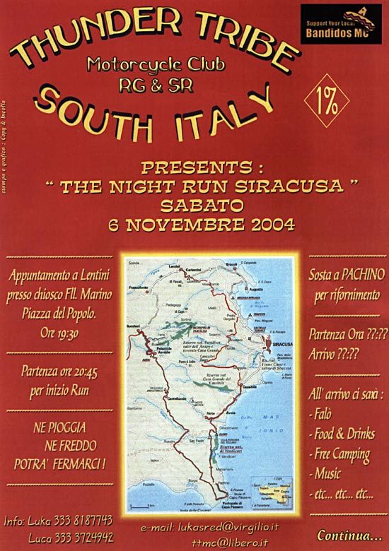 I Thunder Ttribe 1% MC South Italy danno appuntamento a novembre 2005 con il prossimo "The night run RAGUSA".