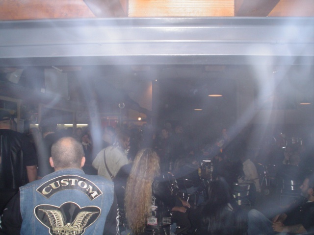 Tanta gente quindi (300-400 persone) di tutti i generi.. mc, pc, free bikers… tante belle moto parcheggiate davanti… parcheggio sul lato e dietro alla Club House per le macchine e posti tenda per i più temerari sull’altro lato dell’edificio (và detto comunque che le dimensioni del locale e la grande ospitalità dei Jackals ha consentito a molti di riposare all’interno nei grandi divani che a una certa ora erano una attrattiva non indifferente per i più stanchi).