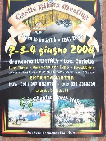 (1/23/2007, 20:21)Motoraduno affascinante nel contesto medioevale, piccolo ma ben curato nei dettagli e nell'organizzazione. Complimenti ai gruppi in particolare ai metallari replicanti dei Ramstein, veramente impressionanti ... grazie anche all'acustica del cortile del castello ... peccato per un tempo coperto ma pungente, che trascinava il popolo biker verso le accoglienti spine di birra ...... al prossimo anno !!!!