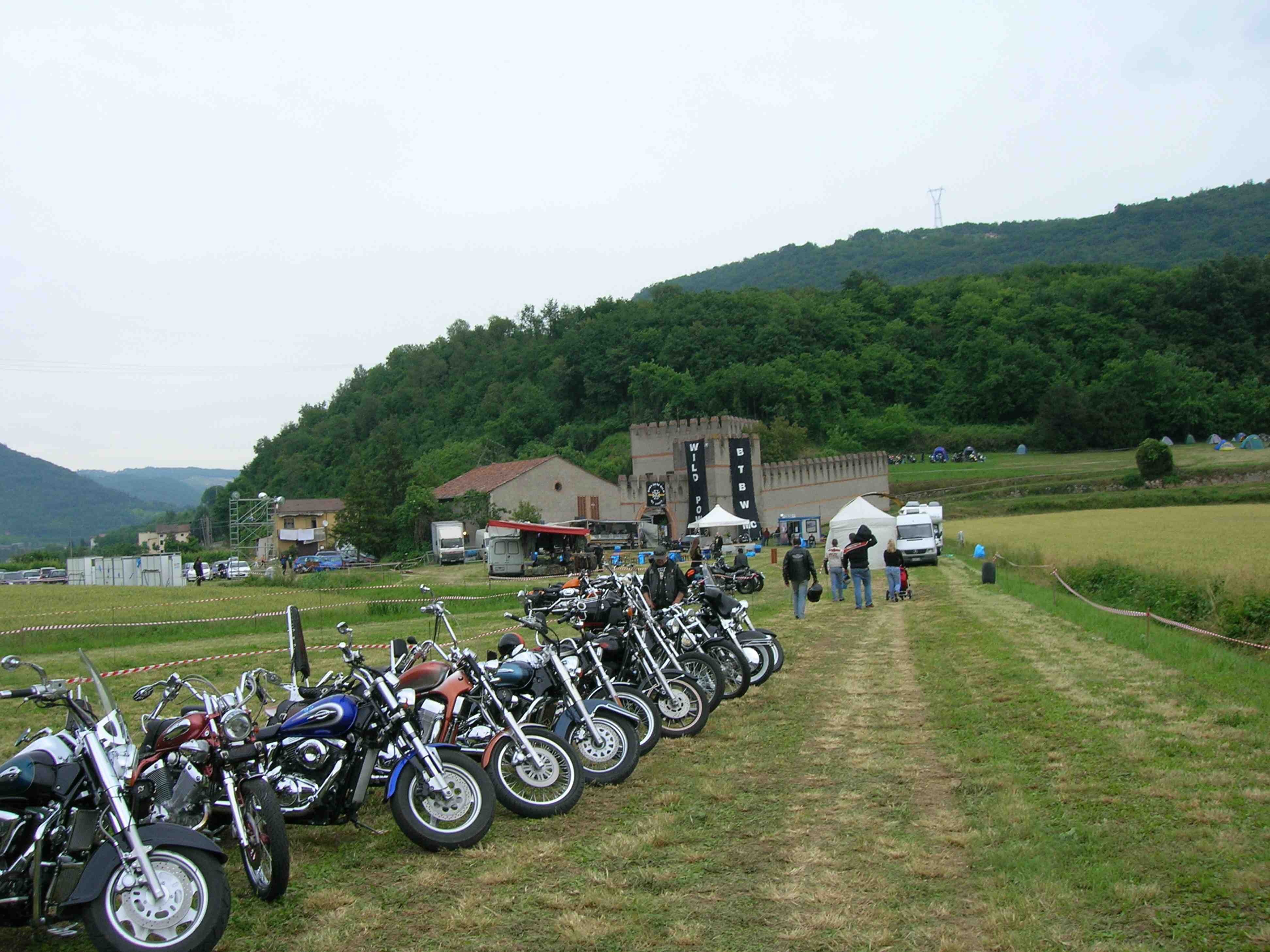 Parcheggio moto sorvegliato, area campeggio "sopraelevata": era sul fianco di una collina su retro del castello ove all'interno trovava alloggiamento il palco dove si son svolti concerti di vari gruppi (niente male davvero) e dove si trovava anche il bar, la cucina era di quelle itineranti su camion ma non per questo non ottima. Infatti ho potuto pranzare e cenare ottimamente! mmmmm uno stinco che ancora vedo nei miei sogni affamati!