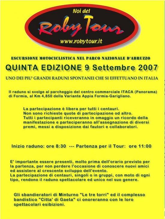Raduno e partenza il 09-09-2007 dal parcheggio del centro comm.le Itaca di Formia (LT) ore 10:30.