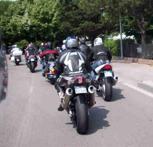 Noi eravamo rivolti nel senso di marcia opposto rispetto a loro ma prima di unirmi al gruppone ho lasciato che sfilasse tutto..... la maggior parte di moto erano custom e vedendo me su una dragstar hanno cominciato a suonarmi e farmi i saluti.....io rispondevo a mia volta con saluti, suonate di clacson e sgasate.... mi sentivo come un bambino al parcogiochi.... è stato incredibile...... poi una veloce inversione a U, diverse centinaia di moto superate (perchè non mi piace essere il fanalino di coda) e via al motogiro.....