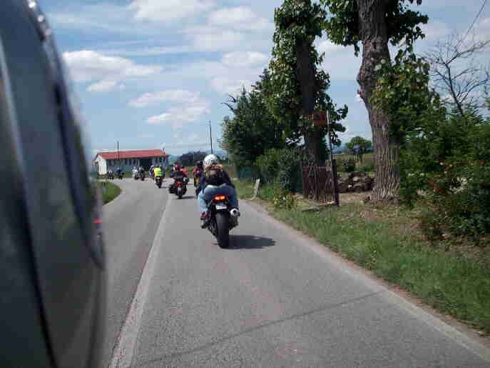 Sapevo che sulle 11 sarebbe partito il motogiro...... erano le 11.10 circa..... proviamo a girare un attimino qui intorno, quasi sicuramente incrociamo il gruppone.....