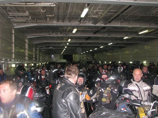 vedere tannti bikers su un traghetto strapieno di moto e un sensazione unica sopratutto quando inviavano inseme le loro moto e sbarcavano sul isola come se fosse una conquista al ultima gocia di benzina...