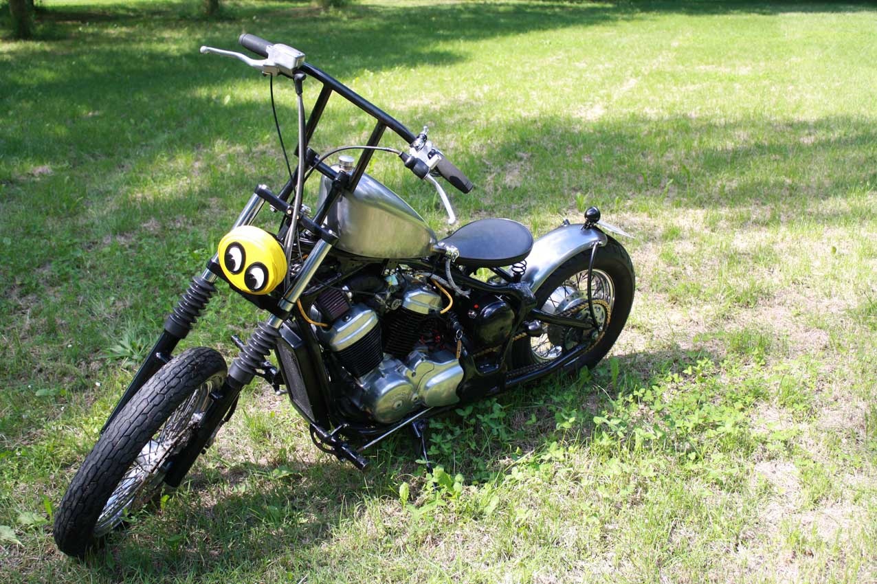 In ogni caso si tratta di un'Honda Shadow VT600 del '92 completamente customizzata. Da quando è stata realizzata ha percorso pochi chilometri e poi sempre esposta a eventi, fiere ecc, per poi essere esposta nella nostra officina.