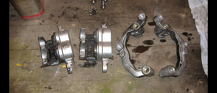 Ho iniziato smontando le pinze dei freni anteriori come si può vedere qua sotto e le ho portate a far verniciare insieme alla piastra per le trombe come vedremo più avanti.Intanto mi sono procurato tutti i tubi aeronautici per i freni anteriori.
