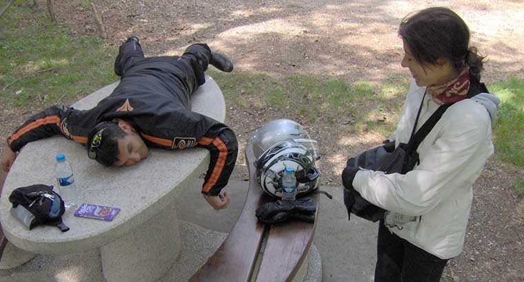 L'autostrada è noiosa ed il caldo si fa sentire. Maciniamo i chilometri con alcune soste per riposarci (foto 3 e 4).