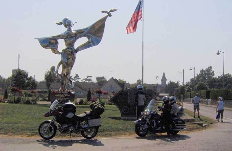 Il 14/7 è festa nazionale. Raggiungiamo Cape de la Hague (foto 8), punta estrema della Normandia, per poi ridiscendere verso est sul tratto di costa che fu lo scenario dello sbarco delle forze alleate durante la II Guerra Mondiale (foto 9). É molto toccante pensare di essere, vacanzieri spensierati, in questi tranquilli luoghi dove si sono giocate gran parte delle sorti dell'Europa al prezzo di tante vite umane. Lo sguardo verso i luoghi di battaglia, la visita dei musei con i reperti bellici, le immagini delle operazioni dell'epoca e gli oggetti personali dei caduti ci riempiono di tristezza… NO ALLA GUERRA!... Troviamo alloggio in una fattoria tra galline, tacchini, mucche, cani e gatti. Le moto sono accolte in un fienile del 1820!! (foto 10).