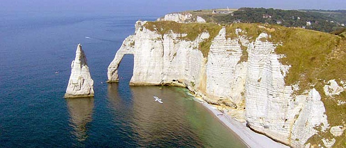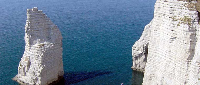 Il giorno successivo, dopo Caen e Le Havre, incontriamo l'incantevole cittadina di Etretat con le stupende scogliere a picco su un bel mare blu (foto 13 e 14). Il cielo è terso ed è un gran caldo.