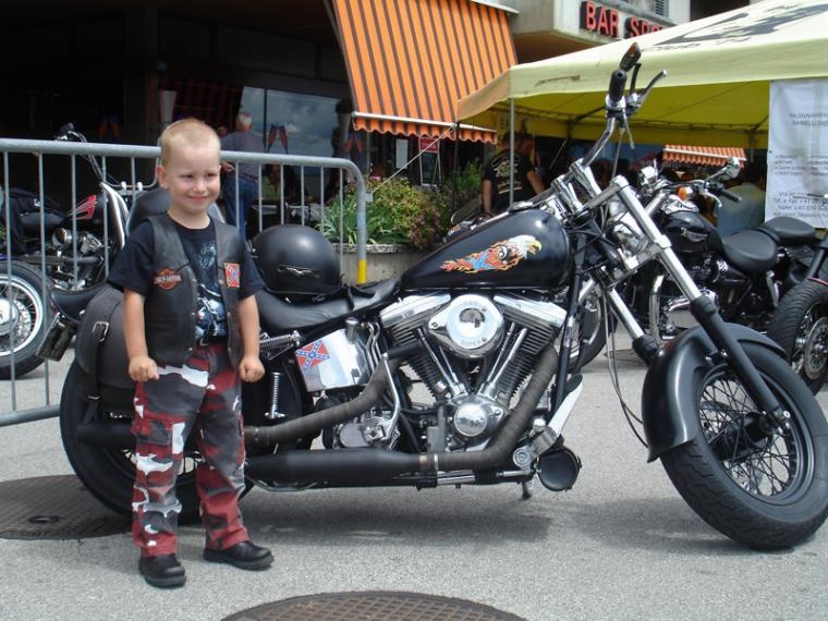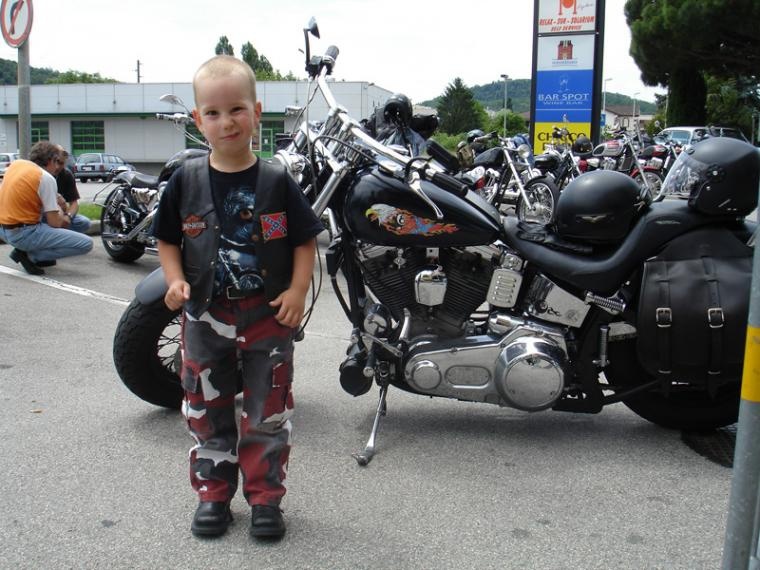 Decidiamo di bere un caffé e di stare un po' all'interno, dove si sta bene grazie alla musica un po' attutita ed alla climatizzazione che rinfresca l'ambiente. Michael e Max fanno amicizia con Bestia, che si rivela un ottimo baby sitter, i bambini gli piacciono e lui piace a loro e si vede, inizia una lotta che lo vede quasi soccombere sotto gli attacchi dei miei due futuri bikers.