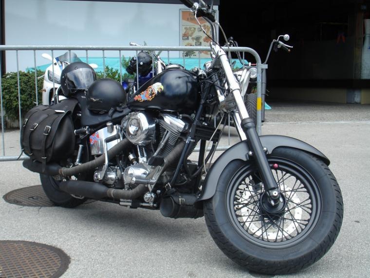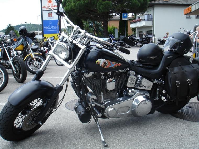 Scendiamo in garage, la moto é reduce da un'uscita la sera prima, quindi i segni dell'acqua sono ben visibili nei carters laterali, ma sinceramente la preferisco così la mia Black Sheep, vissuta e non perfettamente lucida e scintillante, anche se confesso che ogni tanto le do una passata col polish. Max ed io indossiamo i caschi, i guanti e montiamo in sella, alzo l'aria, giro la chiave accendo il motore, un paio di secondi, abbasso l'aria, ingrano la prima e partiamo. Purtroppo il viaggio fino al Bar Spot, dove si tiene il raduno, é veramente breve, 1 km o poco più. Accedo al piazzale dove moltissime moto sono già presenti, le Harley sono in maggioranza, ma non sono le uniche, ce ne sono di tutte le marche e di tutti i tipi, bello così mi piace, una moto é una moto, a prescindere dalla marca e dal tipo.